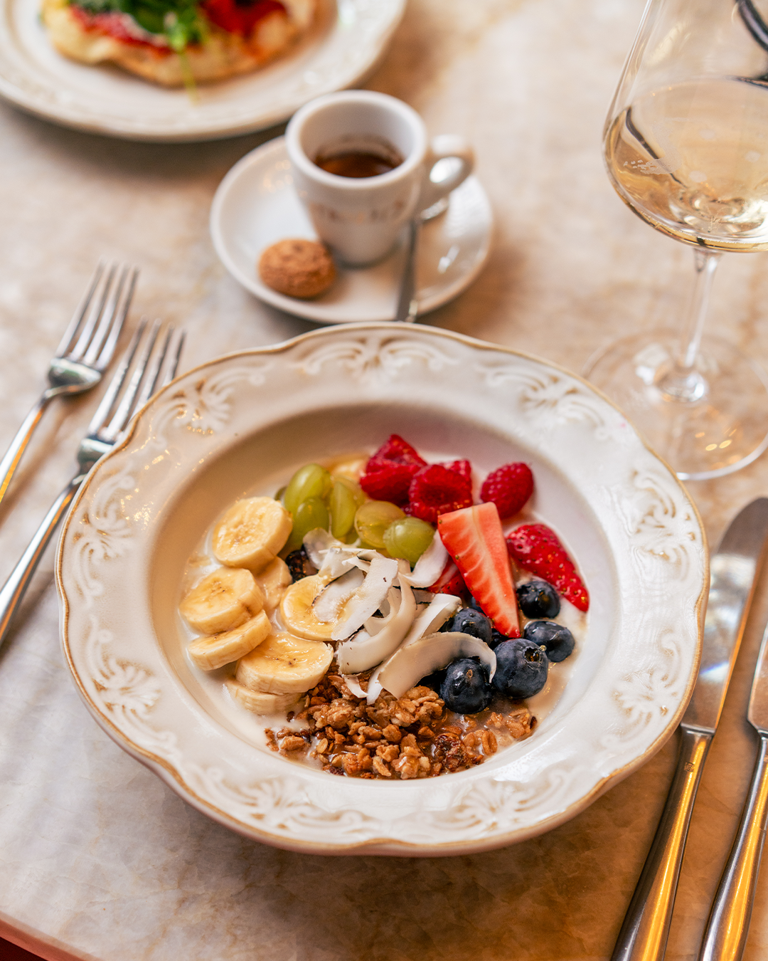 Freu dich auf hausgemachtes Flatbread mit pochiertem Ei und verschiedenen Toppings, kreative Frühstückklassiker wie Avocado auf getoastetem Roggen-Weizen-Brot, Pancakes oder French Brioche sowie ausgewählte Cicchetti, Pasta und weitere Klassiker aus der Strozzi’s Küche.